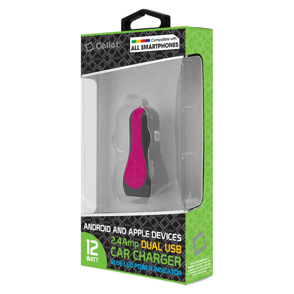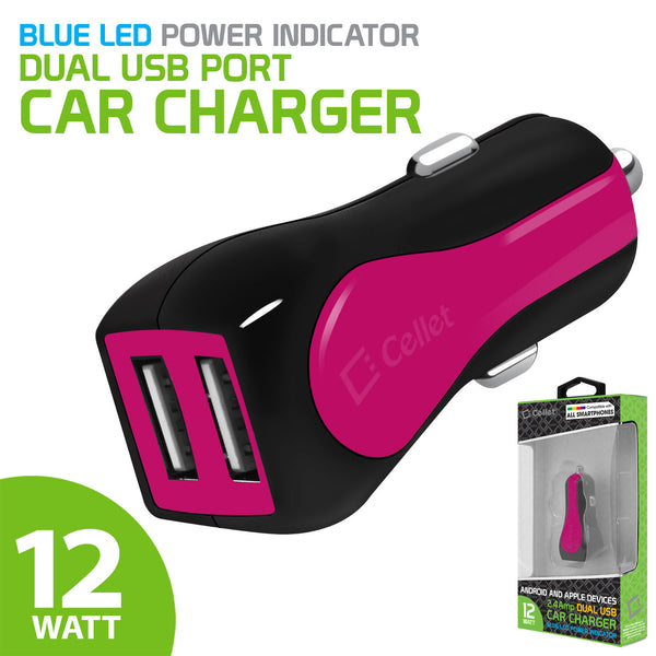 With its sleek compact design, it provides easy access to your USB ports while plugged into your car cigarette outlet and the blue LED light indicator shows that your device is plugged in and charging. Charger provides 12Watt (2.4Amp) of power that can charge up (to two) smartphones at the same time or a tablet with a smartphone and the built-in smart IC chip technology prevents your device from overcurrent, overcharging and overheating. Universal dual USB ports allows you to use existing USB charging cables to charge your Apple, Android or any USB powered device at the same time. (USB cable sold separately)