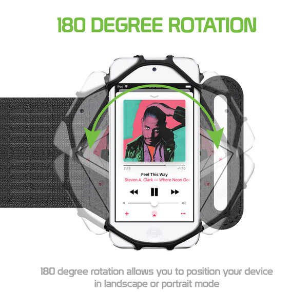 Carry your iPhone 11 XS Max while you exercise with the sweat-resistant exercise wristband. Made of sweat-resistant neoprene material, this wristband will keep your phone secure as you go for a run. The adjustable Velcro band allows you to adjust the band to the size of your wrist for a comfortable fit. Open face allows you to fully access all buttons and connectors. Rotate your device to horizontal or vertical orientation with the 180-degree rotation capability.