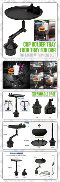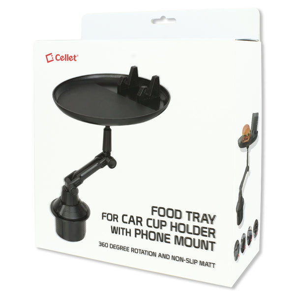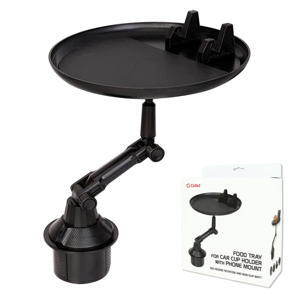 Turn your car into a mobile dining station with this Cup Holder Food Tray with Phone Mount. Designed with an expandable base that fits most standard cup holders, this tray securely holds your food, drink, and smartphone all in one place. The 360° rotating arm and adjustable height provide perfect positioning, while the non-slip silicone pad ensures stability for every snack, meal, or coffee break on the road. Great for commuters, rideshare drivers, or anyone who eats on the go.