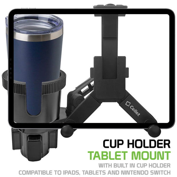 Cellet Tablet Mount with a Cup Holder Base Compatible for Apple iPad Pro 12.9, 11, 10.5, 9.7, Air, Mini, Samsung Galaxy Tab S8 S7 S6 S5 A/E Amazon Kind Fire HD 10 8 7 LG G Pad Surface Go-(Extra Cup)