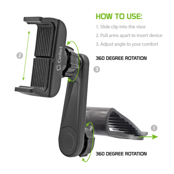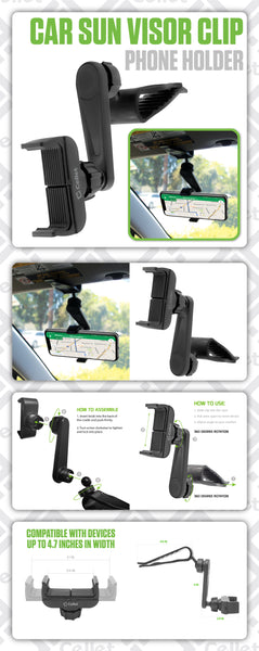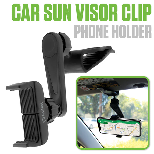 PH710 - Cellet Car Sun Visor Clip Phone Holder, 360° Adjustable Cradle Mount for Smartphones up to 4.7" Wide – Hands-Free GPS Navigation & Safe Driving