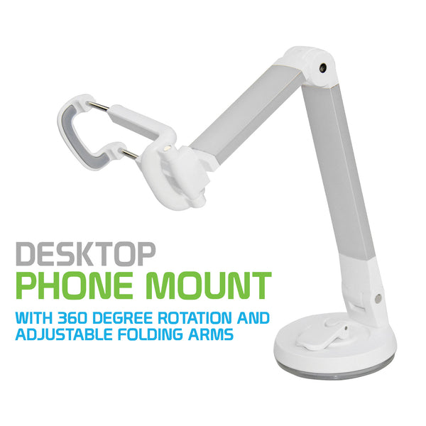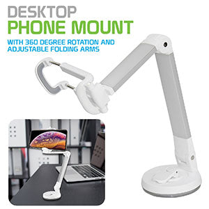 Mount your Smartphone in your car or onto your desk at home with the Dashboard, Windshield and Desktop Holder Mount. Thin and lightweight, this mount can be folded to make it easier to store and easy to carry when traveling. Equipped with expandable arms and soft holder grips, it ensures a secure fit onto your device. The 360 degree rotation capability and adjustable arms allow you to view your device in any desired angle. The attached suction cup and lock lever allows you to mount your phone easily and securely onto any flat surface. The suction cup allows you to easily attach and detach from any surface.