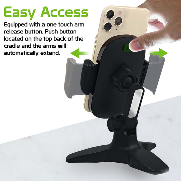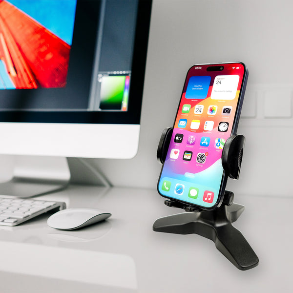 Keep your phone within reach and enhance your work and life efficiency with our Multi-Functional Desktop Phone Holder Mount. Whether you're working from home or in the office, this phone holder is the perfect solution to elevate your phone viewing and accessibility experience. Compatibility Our phone holder mount is designed to be compatible with the latest iPhone and Samsung Galaxy models, including the iPhone 14, 13 Pro Max, Mini, 11, and Samsung Galaxy S23 Ultra Plus, S22, S21, S20, and Note 20. This makes it an ideal replacement for your old phone holder or a versatile accessory for your new device. Adjustable and Secure Our phone holder mount is highly adjustable and secure, providing you with a comfortable viewing experience. You can easily adjust the height and angle of the mount to suit your preferences, while the non-slip rubberized grips ensure that your phone stays in place. Multi-Functional This phone holder mount is versatile and multi-functional, making it perfect for various uses. You can use it for video conferencing, watching videos, browsing the internet, or even as a charging station. It is also designed to accommodate different phone sizes and cases, making it perfect for shared workstations or households. Easy to Install and Use Our phone holder mount is easy to install and use. It comes with a one-touch arm release button that allows you to quickly and easily mount and dismount your phone. The 360-degree rotation feature also ensures that you can adjust the viewing angle without removing your phone from the holder. Upgrade your phone setup and streamline your workstation with our Multi-Functional Desktop Phone Holder Mount. Enjoy effortless viewing, accessibility, and convenience while staying organized and productive.