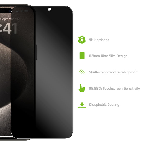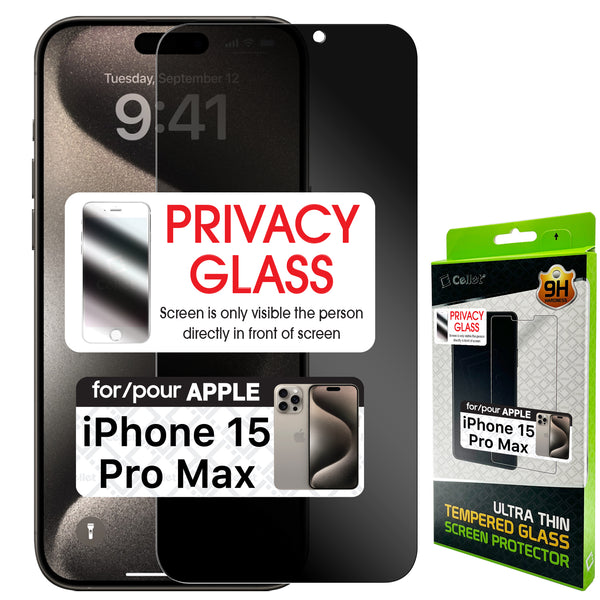 SYIPH15PROMAX - Apple iPhone 15 Pro Max Privacy Tempered Glass Screen Protector (0.8mm) by Cellet
