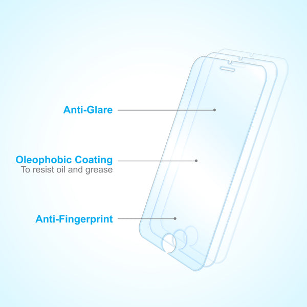 Made of tempered glass, this anti-glare screen protector provides the ultimate protection for your screen without hindering touchscreen capabilities. Each tempered glass screen protector provides 9H hardness strength with minimal thickness, scratch-proof protection, and its oleophobic coating provides resistance against smudges and fingerprints. Made with anti-glare properties, the matte finish aids in it reducing eye strain by blocking the glare from sunlight. Simple to install, the package includes an alcohol wipe, microfiber cloth, blue film dust remover, and instructions to assist in the application of the screen. (Fits Apple iPhone 7 Plus / 6s Plus / 6 Plus)