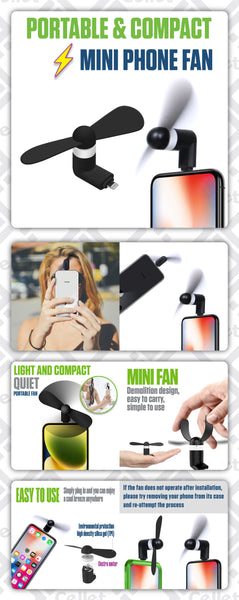 Stay cool anywhere with this Portable Mini Phone Fan for iPhone! Designed with a Lightning connector, this compact fan plugs directly into your device for instant cooling. Perfect for outdoor events, commuting, or relaxing at home, this lightweight and quiet fan delivers a refreshing breeze without draining your phone battery quickly. Built with durable TPE blades and a strong motor, it’s safe, energy-efficient, and easy to carry in your pocket or bag.