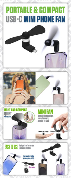 Stay cool anywhere with this USB-C Mini Phone Fan, designed for on-the-go comfort. Just plug it into your smartphone’s USB-C port and enjoy a refreshing breeze instantly. Its portable size, quiet motor, and soft blades make it perfect for travel, outdoor events, or daily use. Compatible with most USB-C smartphones and tablets, this fan is your handy cooling companion.