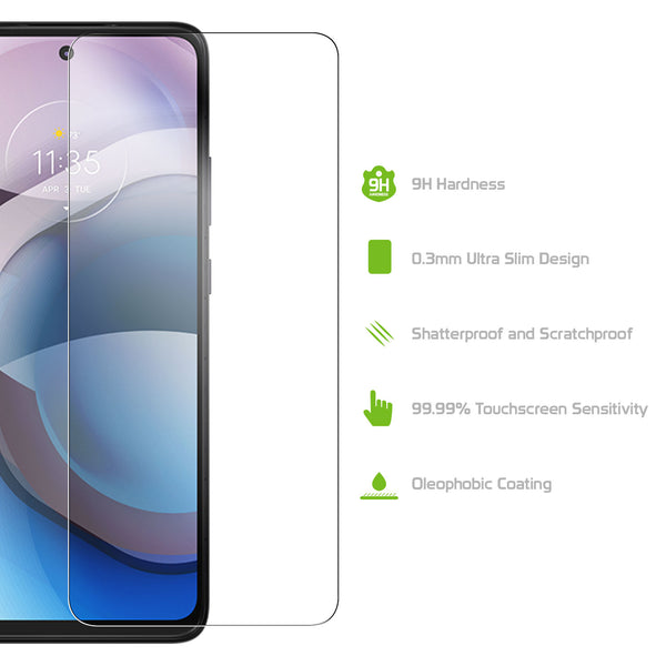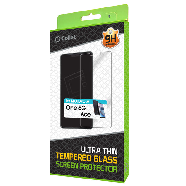 Protect your Motorola E screen with the Cellet Premium Tempered Glass Screen Protector. Precisely cut for the Motorola One 5G Ace, the screen provides the ultimate protection for your screen without sacrificing touchscreen capabilities. Each tempered glass screen protector provides 9H hardness strength with minimal thickness, offering scratch-proof protection without added space and its oleophobic coating gives resistance against smudges and fingerprints. Simple to install, the package includes an alcohol wipe, blue film, microfiber cloth, and sticker directions to assist in the application of the screen.