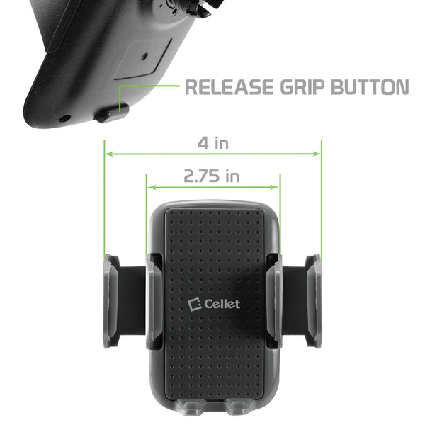 Mount your smartphone securely on your dashboard with the Cellet Smartphone Clip Mount, this phone holder will securely hold your phone with confidence and with no difficulties. Rubberized padded protective side grips and anti-slip backing will ensure a firm hold on your device. The holder has 360-degree rotation, which allows viewing in landscape (horizontal) or portrait (vertical) orientation. Clip the phone mount onto your dashboard and it will hold your device steady as you drive.