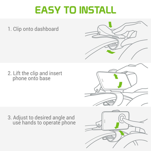 Keep your phone securely mounted while driving with the Cellet Dashboard Phone Holder. This clip-style mount firmly attaches to your car’s dashboard, providing a stable and easily accessible viewing angle for navigation, calls, and music control. Designed for one-hand operation, this holder ensures a safe and distraction-free driving experience.