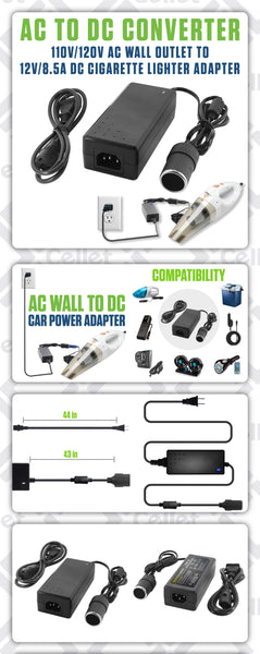 FM8500 - Cellet AC to DC Car Power Converter Adapter, 110V/120V AC Wall Outlet to 12V DC Cigarette Lighter Socket, 8.5A 102W Power Supply Adapter for Car Accessories, GPS, Phones, Dash Cams, Mini Vacuums