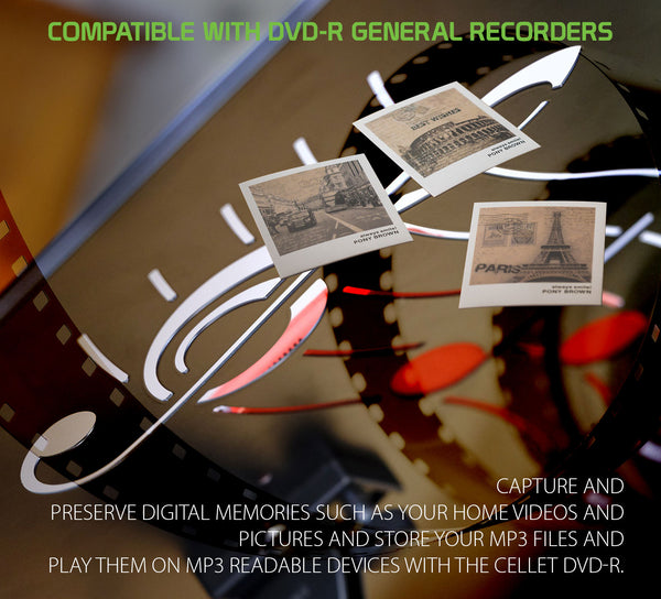 Capture and preserve digital memories such as your home videos and pictures and store your MP3 files and play them on MP3 readable devices with the Cellet DVD-R. With 4.7GB and 120 minutes of record time, the DVD-R can store many high-capacity digital media files; single-use only (non-rewriteable).