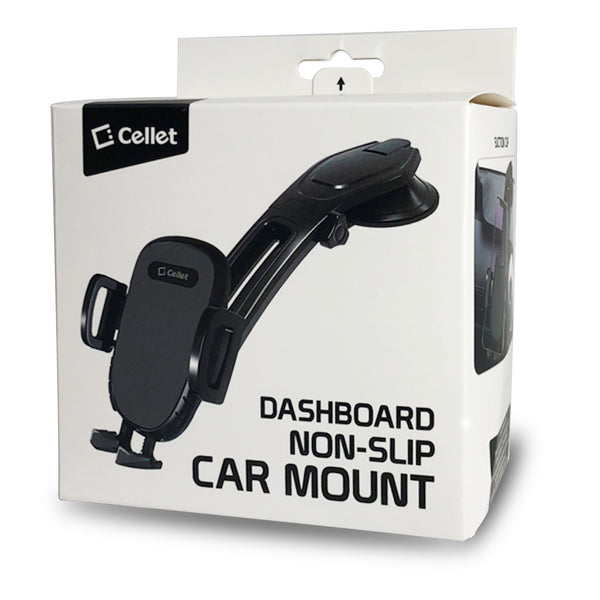 Mount your smartphone securely onto your dashboard with the Universal Dashboard Phone Holder. This phone holder will securely hold your phone with confidence and no difficulties as you drive without blocking your view of the road. Rubberized padded protective side grips and anti-slip will ensure a firm hold onto your device.