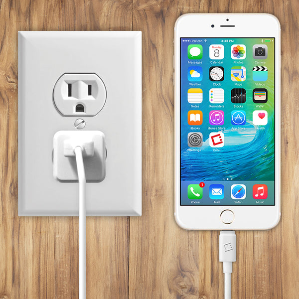Charge your smartphone rapidly with the Cellet USB Home Charger. Equipped with a universal USB port, it gives the option to use the included Lightning cable to charge your iPhone 6s or use an existing cable to charge a different device. Lightning 8 pin cable is Apple Licensed (MFI Certified) therefore it meets Apple's strict manufacturers' standards and specifications so it will not damage your device. Built-in innovative smart protection technology prevents overcharge, overcurrent, and overheating. This compact adapter has folding blades and fits comfortably in a small purse or pocket.