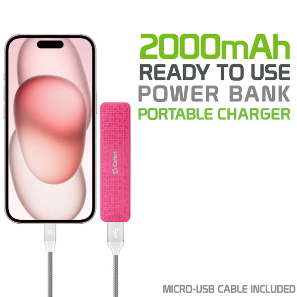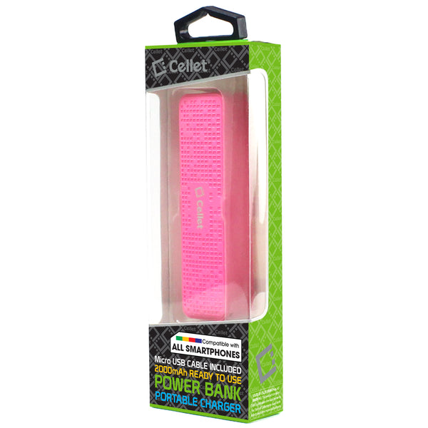 The Cellet 2000mah Power Bank Portable Charger Is The Perfect Charging Solution When An Electrical Outlet Is Out Of Reach. Compact And Portable This Rechargeable Power Bank Is Built With A Micro USB Port For Charging Via Computer Or Wall Adapter. Equipped With A Universal USB Port You Can Use Your Personal Usb Cable Oem Or Certified Third Party To Charge Your Device Your Android Or Apple Device. Its Sleek Mini Design Is Ideal For Traveling As A Back-up Power Source. Please Note Depending On The Size Of Your Battery This Power Bank Is Designed To Provide At Least 35 Percent Or More Battery Power.
