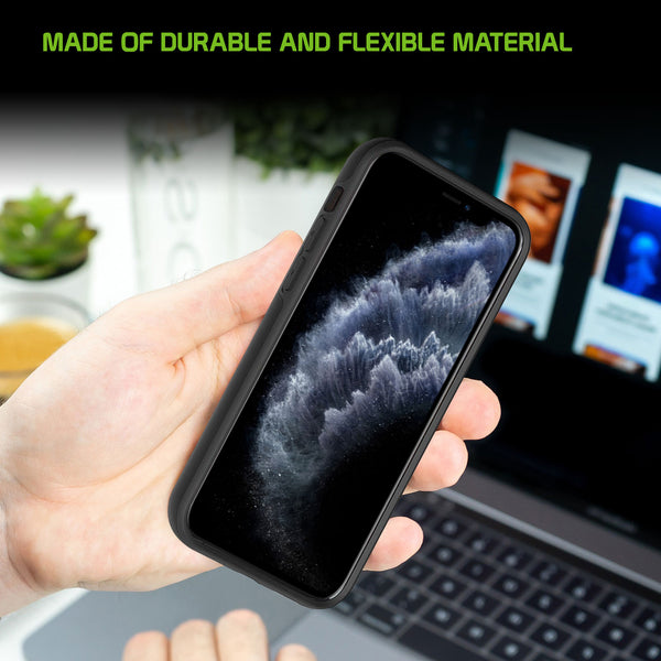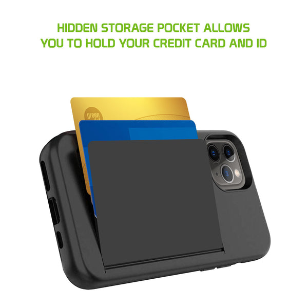 Exclusively made for the Apple iPhone 11 Pro, this case is composed of TPU and durable PC plastic that provides all-around protection against accidental drops. Carry your smartphone, credit card, and ID at once with the Cellet iPhone 11 Pro case with an ID/Credit Card Holder. Featuring a built-in storage pocket that can hold your credit card and ID securely - saving you the hassle of bringing your purse or wallet. Simply flip open the back to the store and take out your credit cards. The durable PC plastic protects your iPhone 11 Pro’s exterior from any scratches. Built-in tactile buttons are highly responsive and precise cutouts do not hinder accessibility to buttons, controls, bottom speaker, and lightning port. Flexible yet shock absorbent, protect your smartphone from any scratches with the case. Made of durable and flexible material designed exclusively for the Apple iPhone 11 Pro.