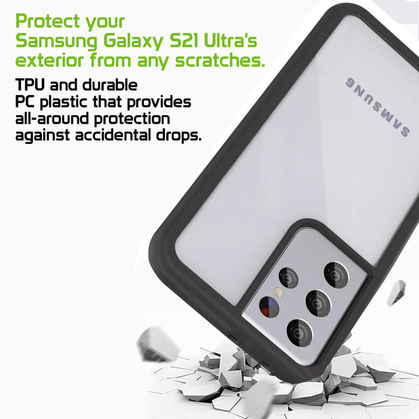 Exclusively made for the Samsung Galaxy S21 Ultra, this case is composed of TPU and durable PC plastic that provides all-around protection against accidental drops. The durable PC plastic protects your Samsung Galaxy S21 Ultra's exterior from any scratches. The slim, lightweight clear design adds minimal bulk and displays the phone's original exterior. Built-in tactile buttons are highly responsive and precise cutouts do not hinder accessibility to buttons, controls, bottom speaker, and lightning port.