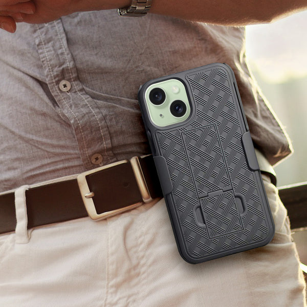 Combining protection with functionality, this shell plus holster case allows you to carry your device with ease while providing maximum all-around protection. Built-in media kickstand allows viewing in landscape (horizontal) or portrait (vertical) orientation. The case easily slips into the heavy duty holster, so you can carry your phone either face up or face down. In addition, the belt clip includes 180-degree rotation capability so you can position the holster at any desired angle. The holster and hard shell combo case comes in all black and contains TPU, rubberized soft coating, which aids as an extra step of precaution against accidental cosmetic damage. Look no further! The slim profile and the multi-functionality of this product merge style, versatility, and supreme protection.