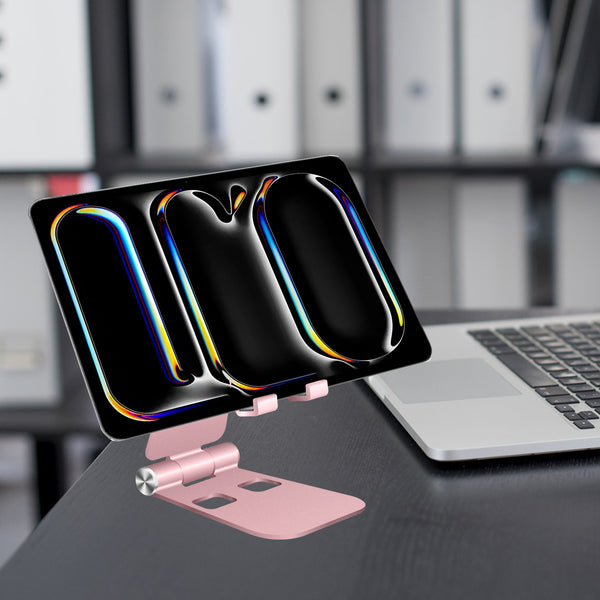 Mount your Smartphone, iPad, or tablet onto your desk or any flat surface at home with the Adjustable Aluminum Stand. Slim and lightweight, this mount can be folded to make it easier to store and carry when traveling. Equipped with anti-slip rubberized and soft holder grips, it ensures a secure hold onto your device. The 270-degree rotation capability lets you view your device in any desired position. The base is equipped with non-slip rubberized grips to ensure the stand stays in place. An accurate cutout was added for your charging cable to maintain a neat and tangle-free environment.