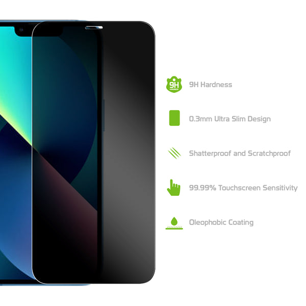 Protect your iPhone 13 mini screen from prying eyes with the Cellet Premium Tempered Privacy Glass Screen Protector. Precisely cut for your iPhone 13 mini, the screen provides the ultimate protection for your screen without hindering touchscreen capabilities. Each tempered glass screen protector provides 9H hardness strength with minimal thickness, scratch-proof protection, and its oleophobic coating provides resistance against smudges and fingerprints. Featuring a transparent black appearance for extra privacy, the screen can only be viewed at a straight angle and prevents others from looking at your phone. Simple to install, the package includes an alcohol wipe, microfiber cloth, and instructions to assist in the application of the screen.